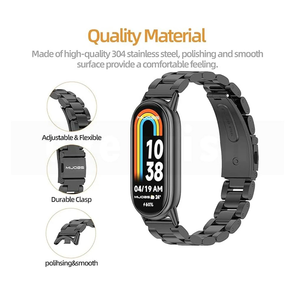 خرید بند فلزی 3BEAD مناسب ساعت هوشمند شیائومی می بند Mi BAND 8 استیل با کیفیت