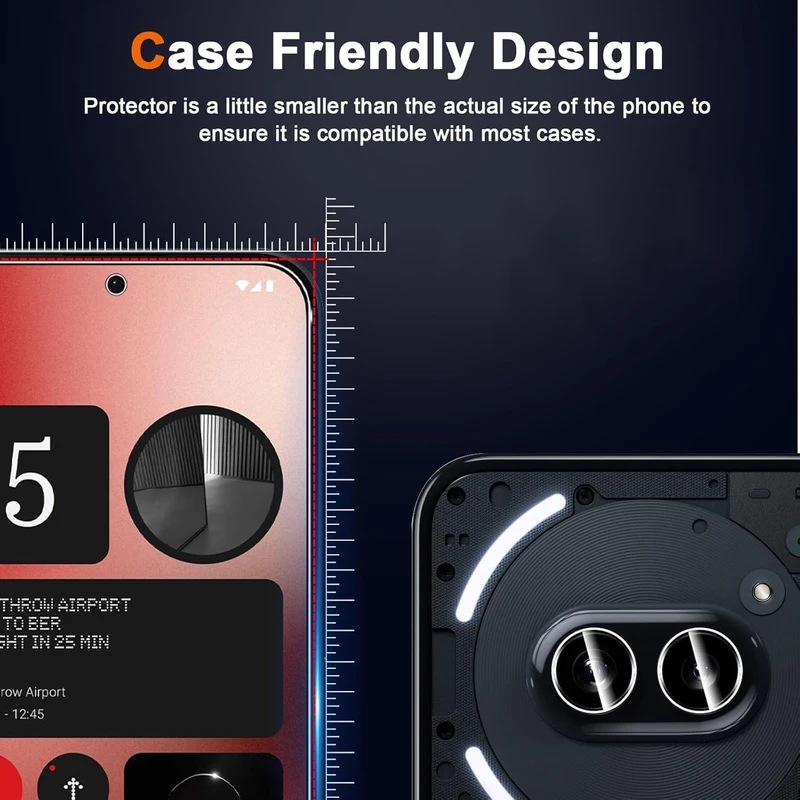 این گلس با طراحی دقیق و برش لیزری، کاملاً منطبق با ابعاد صفحه نمایش Nothing Phone 3a تولید شده است. این انطباق کامل تضمین میکند که لبهها و بخشهای حساس نمایشگر، مانند دوربین سلفی یا سنسورها، به درستی پوشش داده شده و مسدود نشوند.