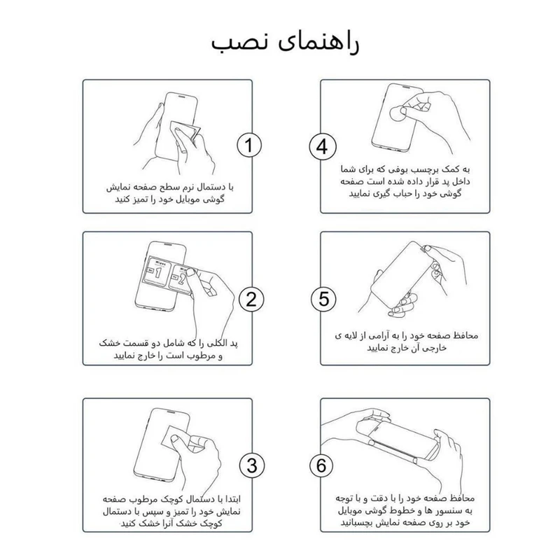 ۹H جلوگیری از انعکاس نور جلوگیری از ایجاد خط و خش قابلیت نصب آسان مقاوم در برابر چربی و اثرانگشت مقاوم در برابر خط و خش نصب بدون حباب