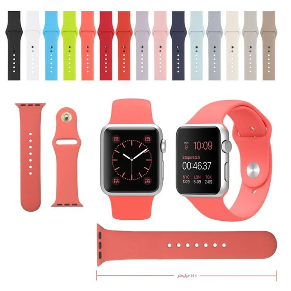 بند اپل واچ سیلیکونی پین دار مناسب اپل واچ سایز 38/40/41 میلی متری تمامی سری ها Apple Watch Se/1/2/3/4/5/6/7/8/9